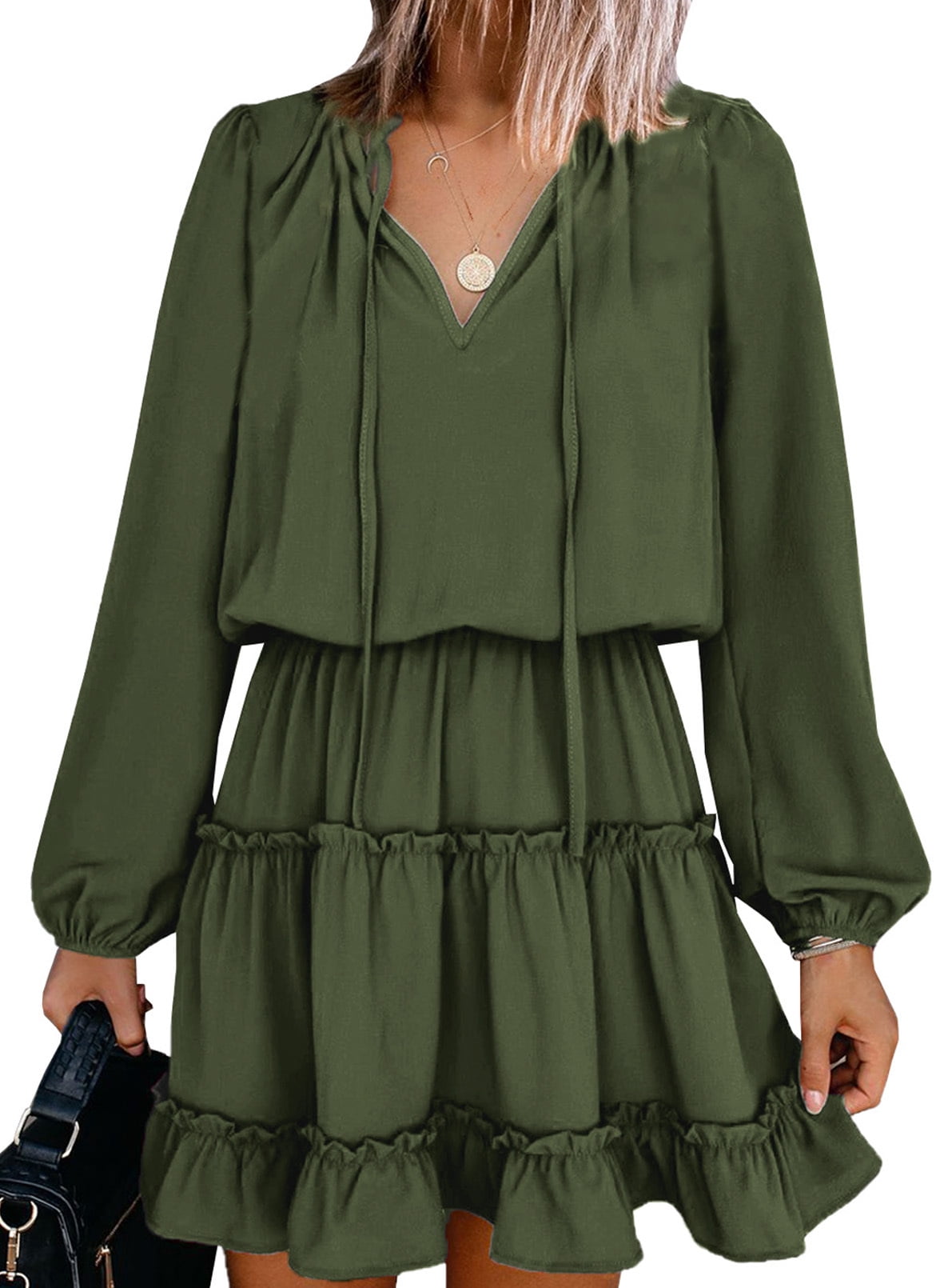 Dokotoo Womens Green Chiffon V Neck Ruffle Mini Dresses Swing Skirt Shift Dress Size Large Us 12 14 Walmart Com